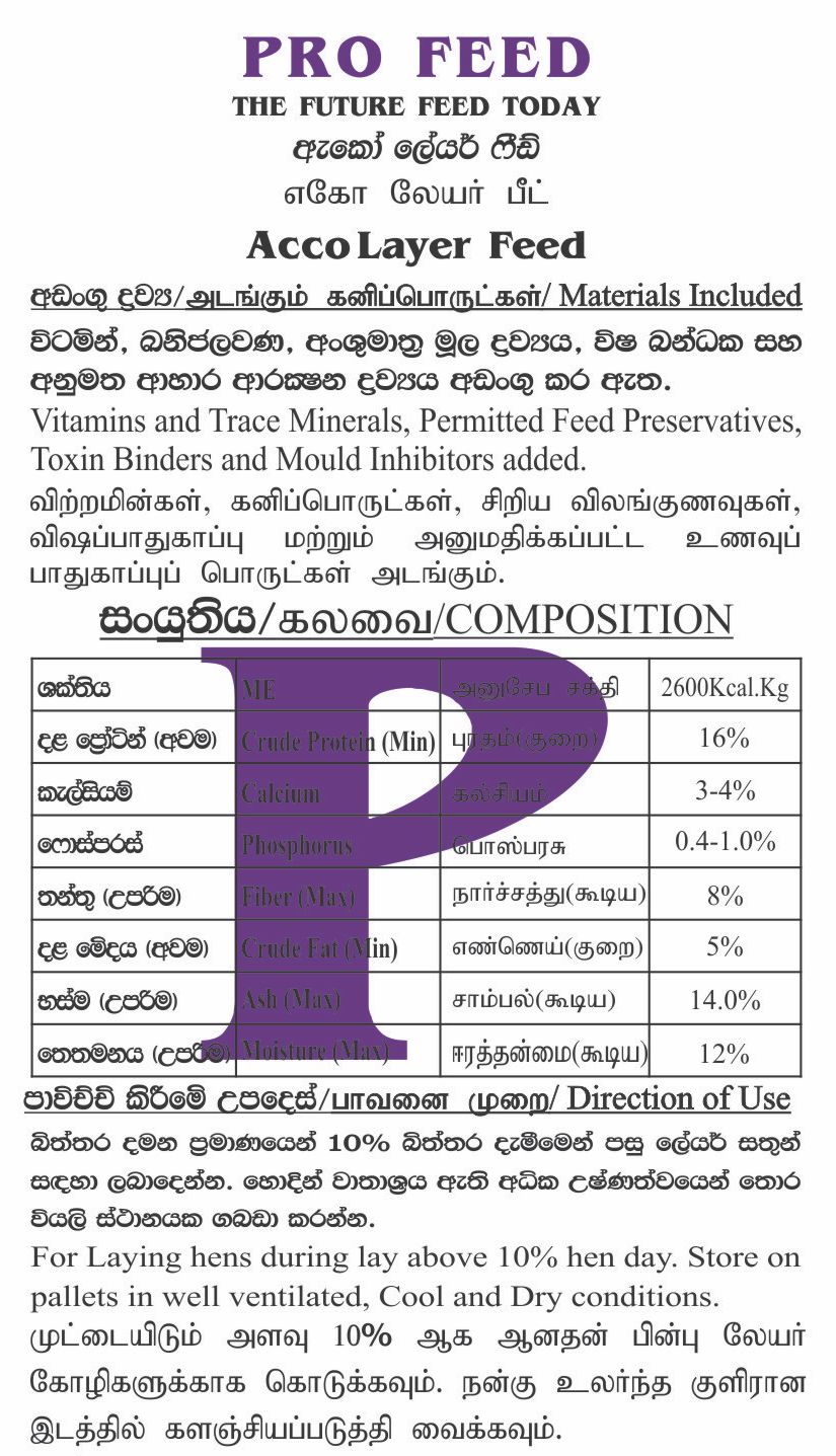 For laying hens during lay above 10% hen day. Store on pallets in well ventilated, cool & dry conditions. Use within 30 days from date of manufactures.